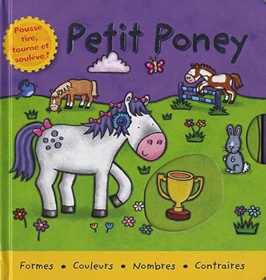 Aujourd'hui a lieu le Grand Prix des poneys et tous les animaux sont impatients ! Le petit poney participe a toutes les compétitions Rejoins-le vite et viens t'amuser avec lui et ses amis ! Pousse, tire, tourne les pages et soulève des fenêtres pour découvrir des formes, des couleurs, des nombres et des contraires. Le livre des tout-petits, pour apprendre en s'amusant.