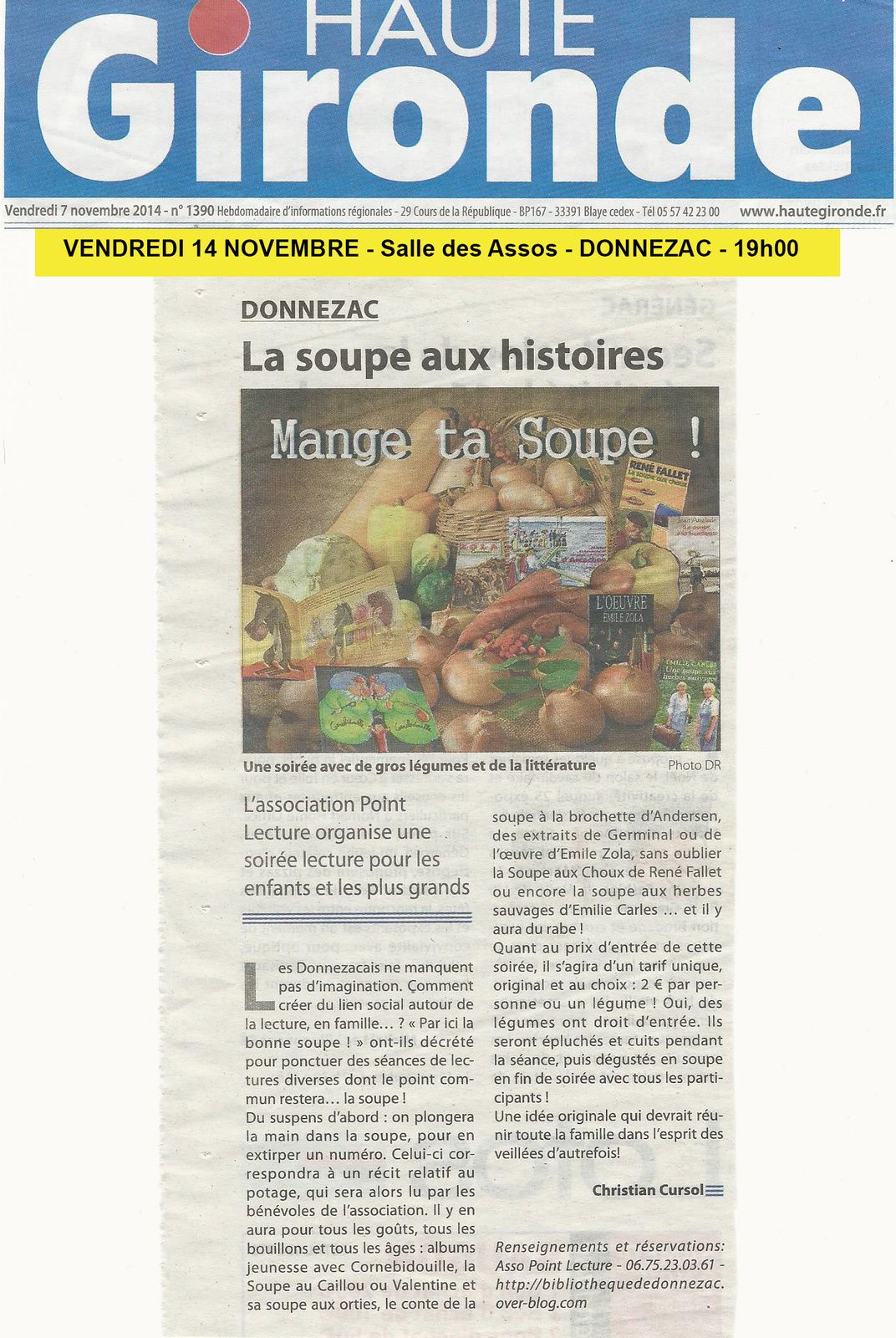 10 Novembre 2014 , Rédigé par Bibli Donnezac Publié dans #Presse Book