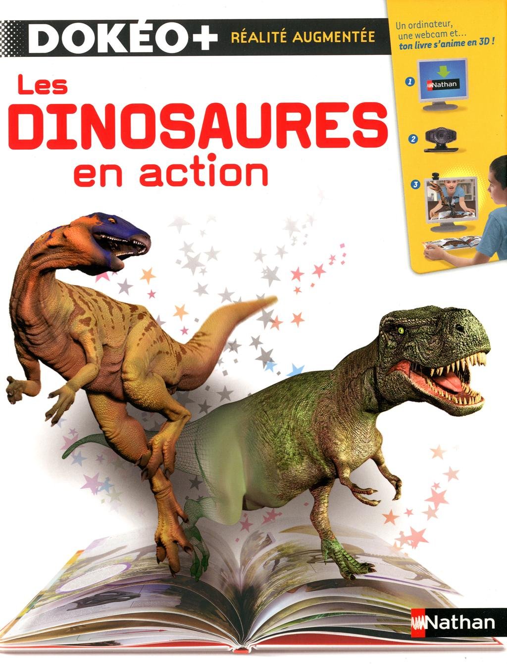 En plus du livre, avec ton ordinateur et ta webcam, tu vas pouvoir faire éclore un œuf, nourrir les dinosaures, et les voir se battre en 3D !